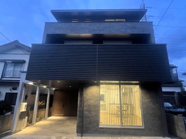 敷地面積92㎡、延床面積35㎡(ガレージ込み)、木造3階建ての2世帯住宅です。